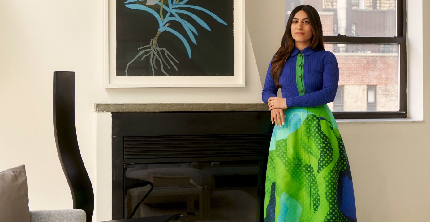 Strolling through Mehra’s Art Deco apartment overlooking New York’s Central Park, one finds works by Robert Longo, Issy Wood, and Ed Ruscha. An Anna Weyant hangs in the 30-year-old’s dining room. She tells me, offhandedly, that she won it in a bet with friends at the Armory Show. “My focus has always been to support today’s most compelling living artists,” she says. “I prefer to know that my patronage is directly impacting an artist during their lifetime.”