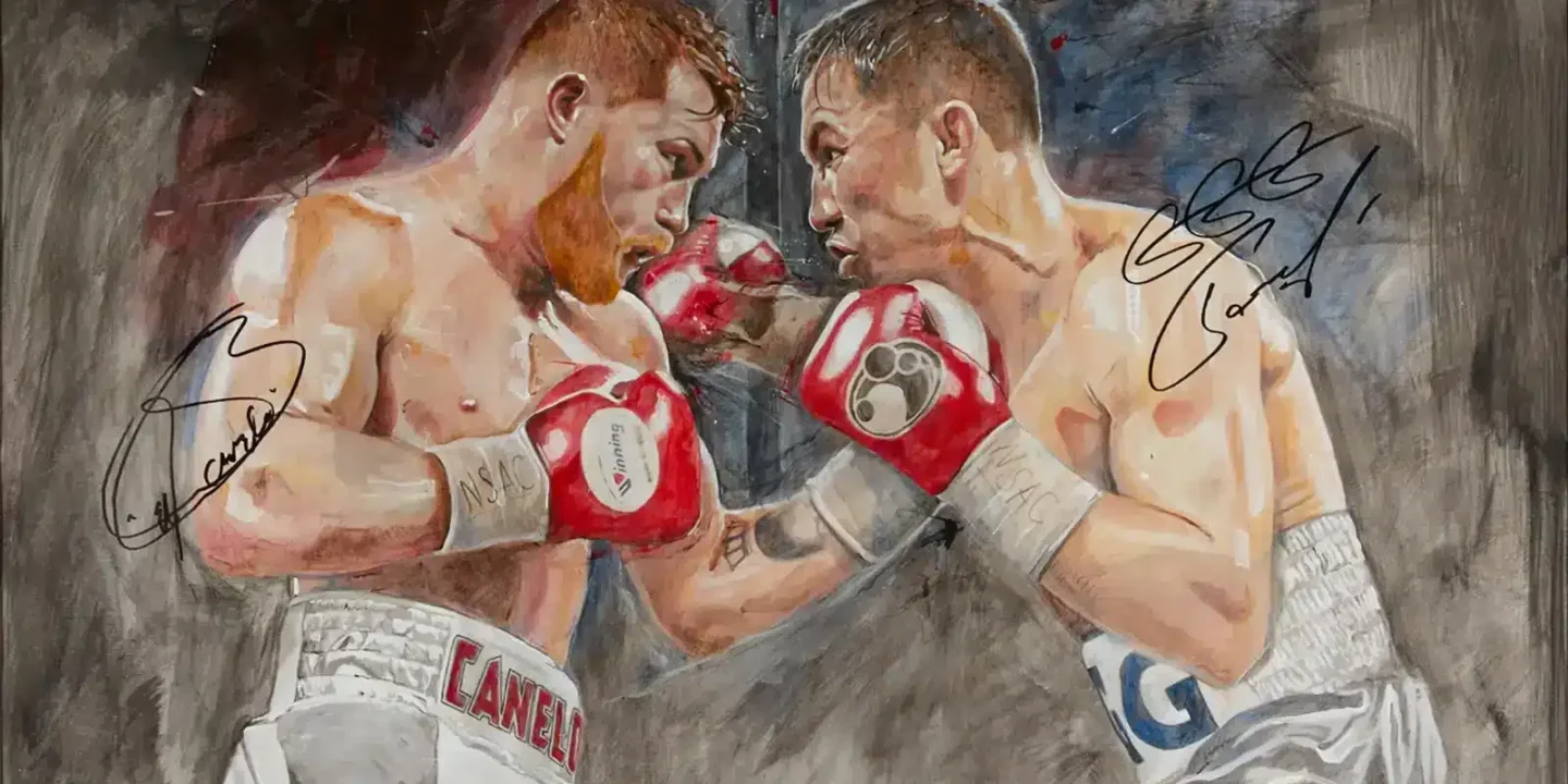 A highlight for UK boxing fans will be the original painting of the second fight between Canelo Álvarez and Gennady Golovkin (2018), created by renowned British artist Richard T. Slone. The work is especially significant as it became the first painted Boxing News cover in the magazine’s long history, marking a milestone in the visual culture of the sport.