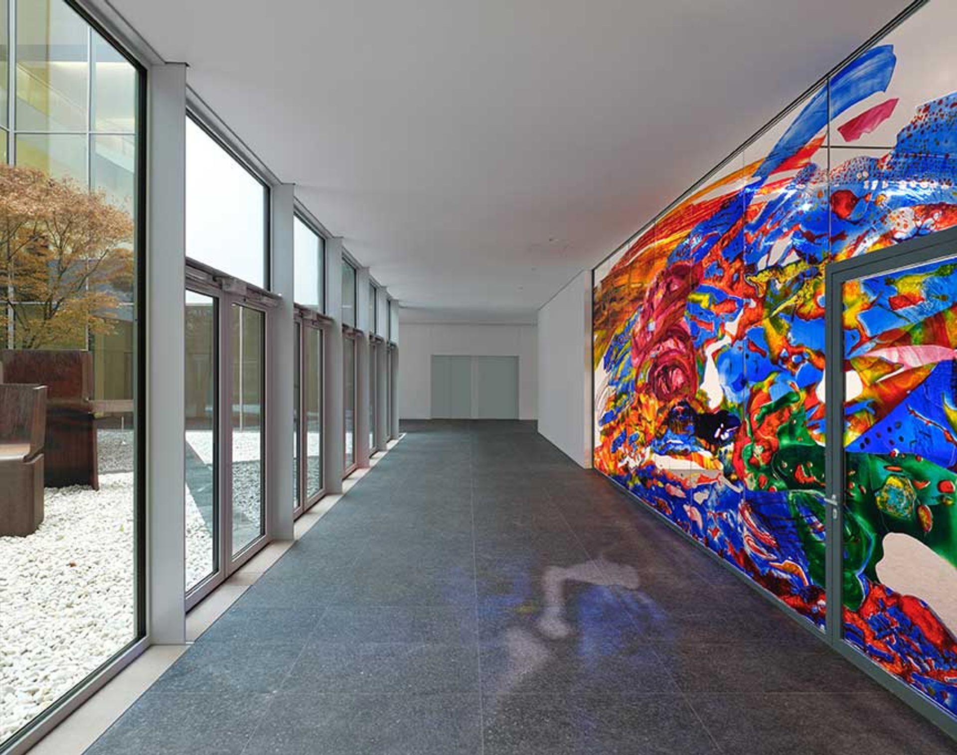 The museum commissioned glass works by Katharina Grosse, MadC and Karl-Martin Hartmann and an installation by Bettina Pousttchi for the foyer. A sculpture by Eduardo Chillida is on display in a glass-enclosed inner courtyard.