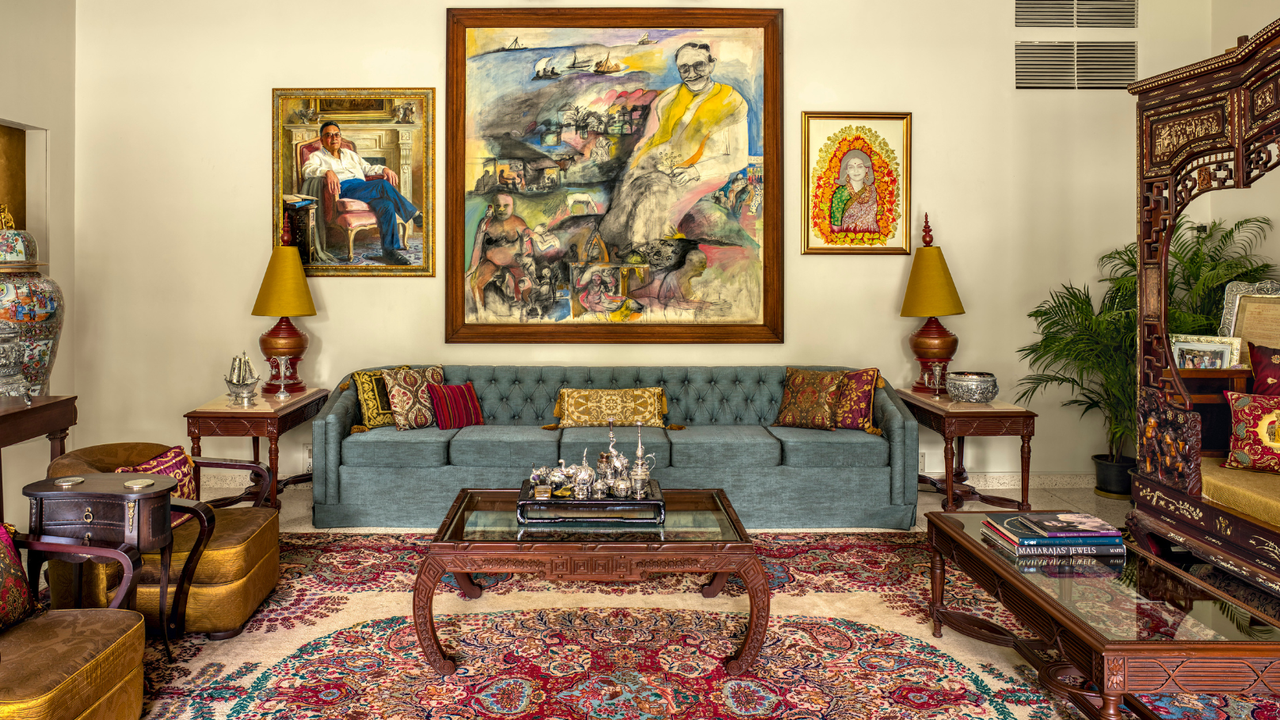 Sonam Kapoor may be one of Bollywood’s most loved actors, but she is also, with growing stealth, a renaissance woman. With an eye for heritage—belying her age, Kapoor has curated a succession of interiors that startle with her innate sense of craftsmanship and detail. “This house, which I share with my husband Anand and baby son Vayu, represents a new chapter for me, as a woman, a collector—and a mother,” she says. “I had been longing for a base in which to curate all the things I have collected while filming in far-flung parts of India over the years. If I love something, nothing will stop me getting it home,” she recounts, sharing with gusto the adventure of carrying a vast Bikaner durrie, found while filming at Lakshmi Niwas palace, back to Mumbai where it languished in storage. Now it embellishes the entrance hall, a chorus of soulful reds and oranges under foot, in a room made otherworldly with antique Chinese glass paintings and Pierre Frey wallpaper.