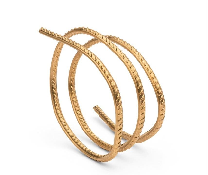 Rebar by Ai Weiwei in 24k gold being shown by the Elisabetta Cipriani Gallery. It can be worn as a ring, bracelet or necklace