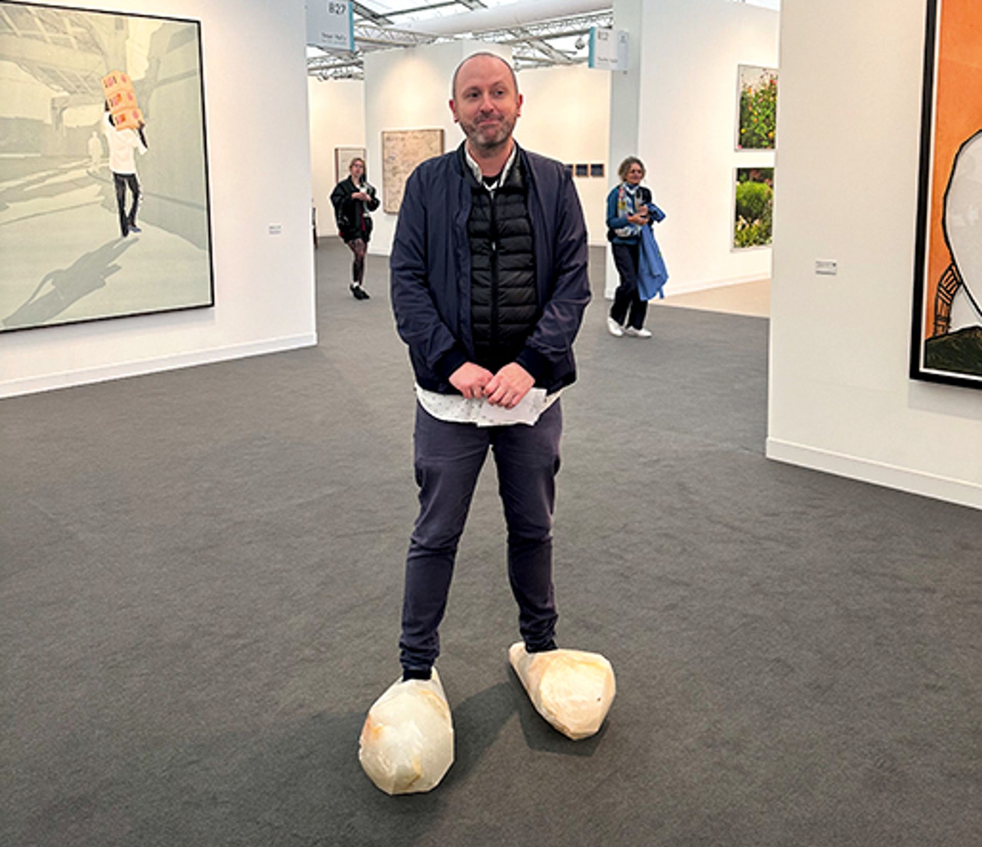 Visitors to the fair can literally step into the shoes of Marina Abramović at Sean Kelly’s stand, which is showing the performance artist’s Shoes for Departure (1991/2017). The imposing footwear is made from pure quartz crystal and carries a price tag of €150,000. “The boots isolate you from the magnetic forces of the earth. They mentally teleport you to somewhere else,” Kelly says. Abramović has previously instructed the public to “take off your shoes and, with naked feet, put on the two crystal shoes, close your eyes, don’t move, and make your departure.” The Art Newspaper’s correspondent (pictured) kept his socks on, unfortunately.
