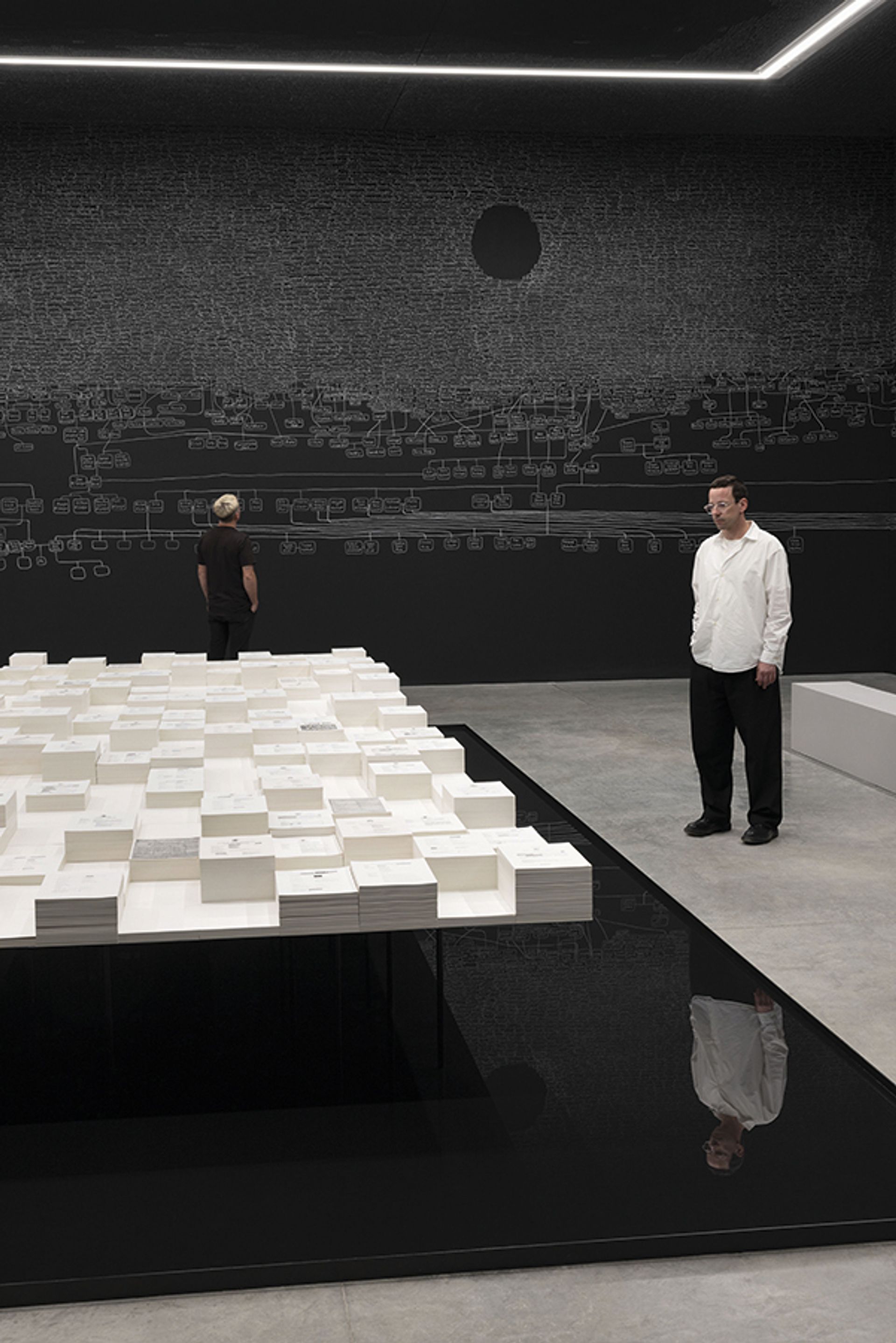 Moore won the Golden Lion at the 2024 Venice Biennale for kith and kin, his Australia Pavilion installation on Aboriginal kinship and colonial trauma. With Kamilaroi-Bigambul ancestry on his mother’s side and British-Scottish on his father’s, Moore created a family tree spanning 2,400 generations and 65,000 years. The vast drawing surrounds a memorial for First Nations people who have died in Australian state custody.