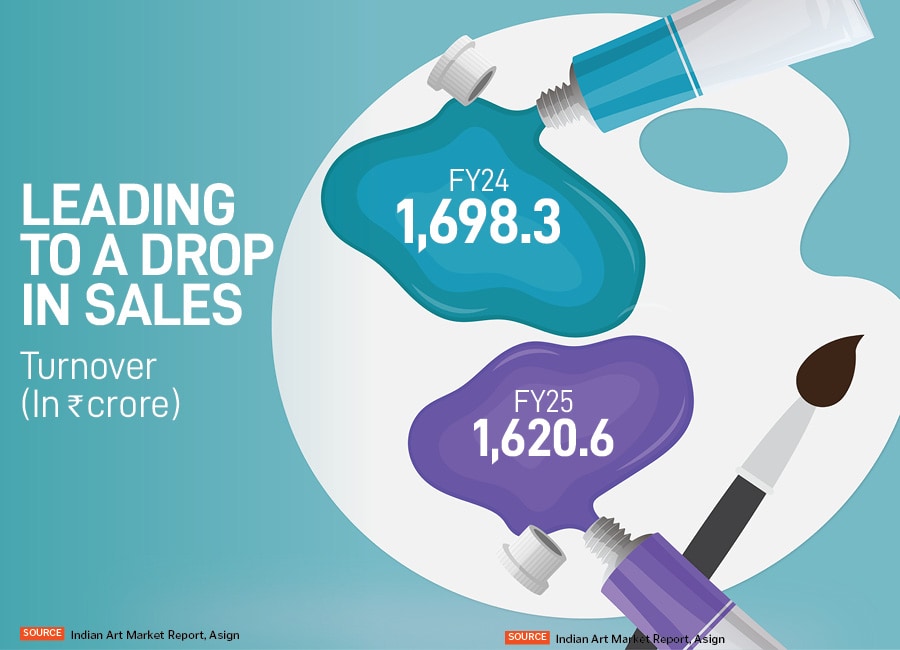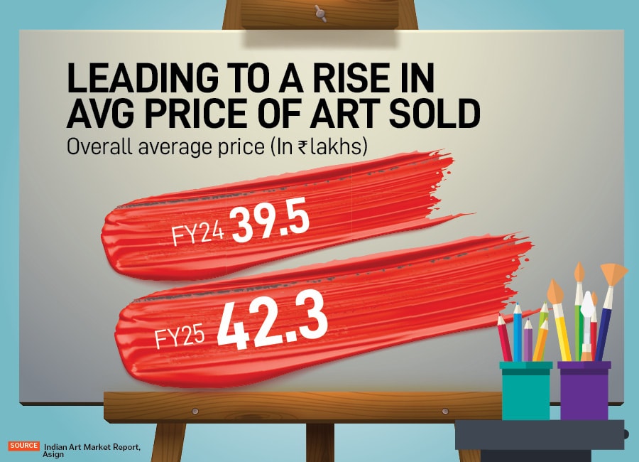 India’s art market is becoming more selective, prioritising fewer, higher-priced pieces over a larger quantity of works. As Saffronart, a leading Indian art auction house, celebrates its 25th anniversary with this week’s live auction, the volume of art sold through auctions has declined while the average price per work has increased significantly, shows a report on the Indian art market by Asign, a digital platform for artwork and collectibles.