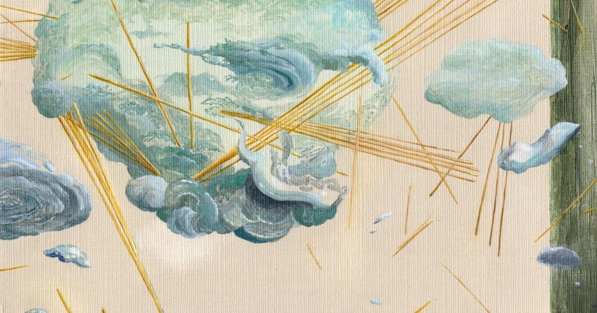 Daisy’s paintings seek to ‘domesticate vast concepts through intimate imagery’, using tables and chairs to represent human presence, stripped-back interiors for fragile environments, and meteorites for symbols of the unknown.
