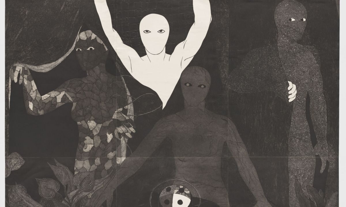 Belkis Ayón. Resurrección (Resurrection). 1998. Collagraph on nine sheets of paper, overall 9′ 13/16″ × 7′ 1″ (276.5 × 215.9 cm). Unpublished. Printer: the artist, Instituto Superior de Arte (ISA), Havana, Cuba. Edition: 4. Riva Castleman Endowment Fund. The Museum of Modern Art, New York. © 2024 Belkis Ayón. Courtesy of the Artist’s Estate. Digital image © 2024 The Museum of Modern Art, New York, photo by Robert Gerhardt