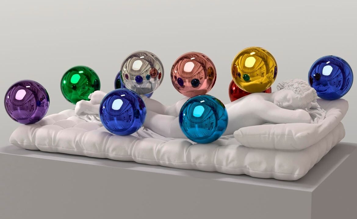 Jeff Koons, (Sleeping Hermaphrodite) Gazing Balls, 2025. Plaster and glass, 60.6 x 179.5 x 100.3 cm. Edition 1 of an edition of 3 plus 1 AP. © Jeff Koons.