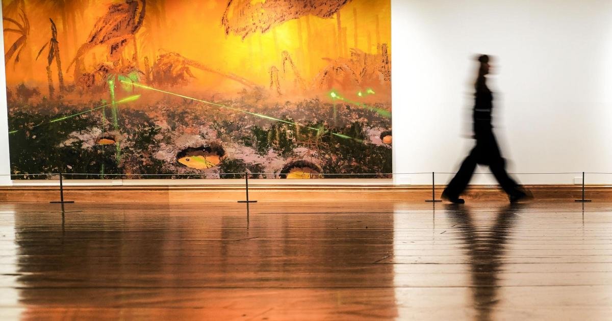The paintings do not have human figures while one shows the “shadow of a helicopter blade over a table and empty chairs”, and another appears to suggest body bags.