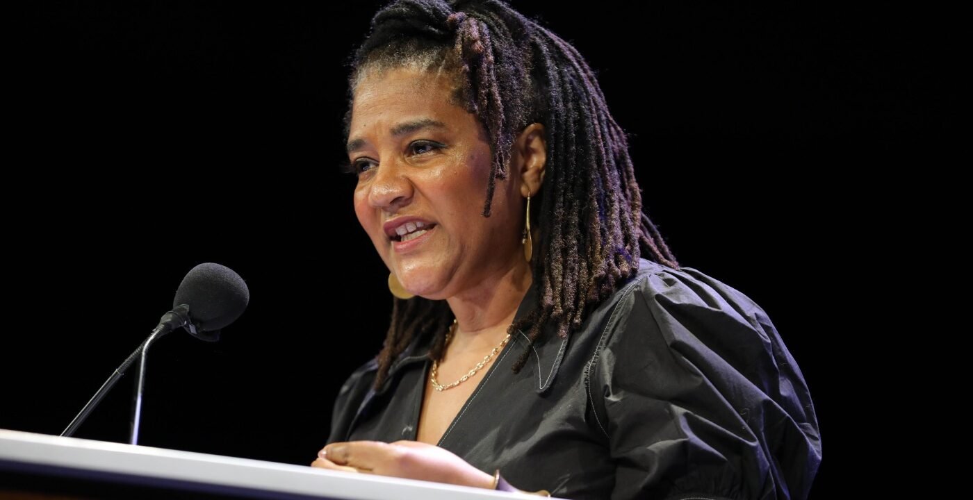 Lynn Nottage onstage in New York City in 2023. Nottage is one of the organizers of the “Fall of Freedom” creative protest.