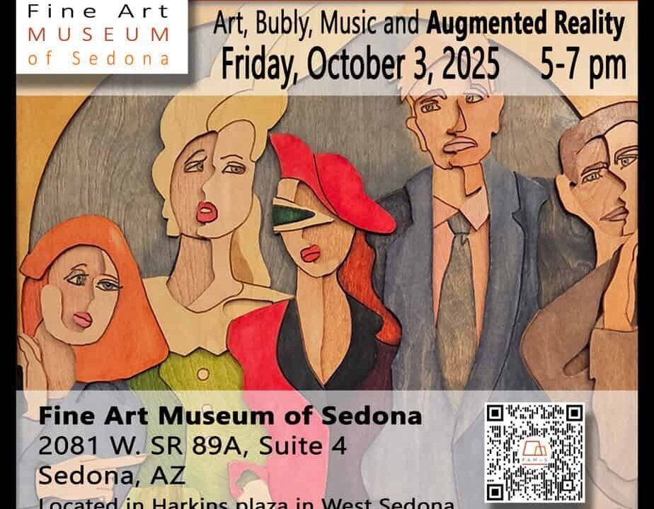 The Fine Art Museum of Sedona located 2081 SR89A at invites locals and visitors to celebrate our FAMoS One Year Anniversary and experience its newest exhibition, “Retro-Spectacle… A Visual Journey,” a captivating showcase of works by acclaimed Sedona artist and designer, Taylor Hellmann.