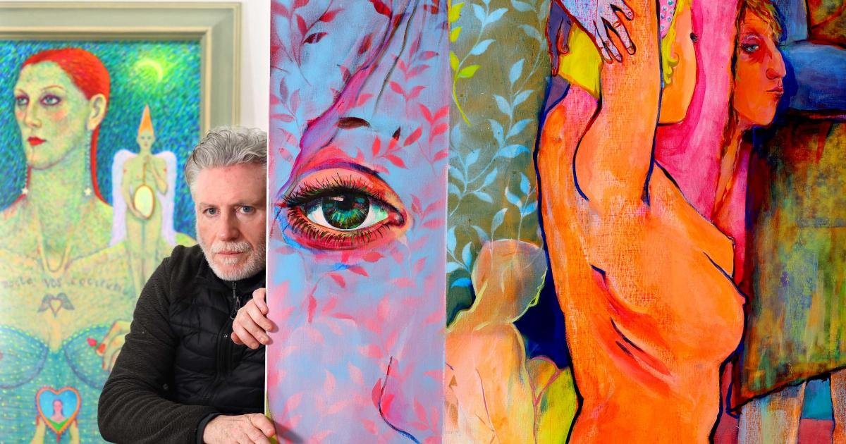 RGI administrator / artist Michael Durning pictured with bird sculptures by Shona Kinloch (Image: Colin Hattersley)