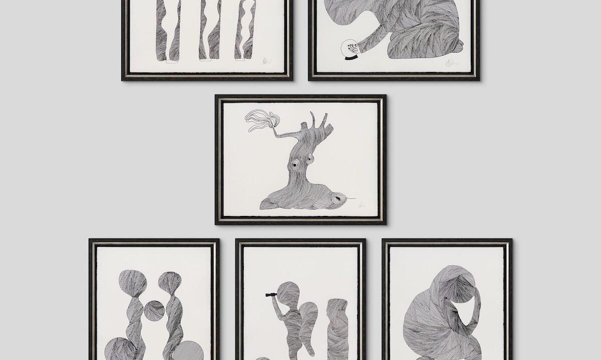Beginning with experiments in felt tip pens and a sketchbook, he eventually developed his signature style, featuring a distinctive “ball of string” effect.