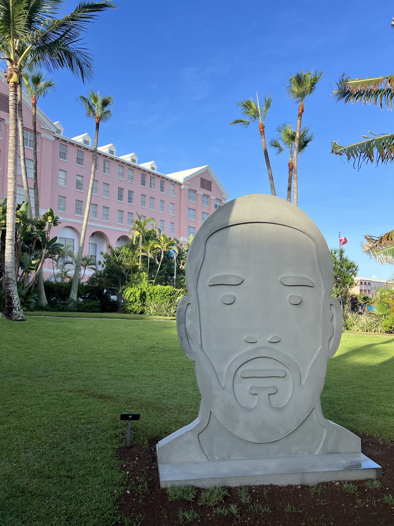 A spokesperson said, “Hamilton Princess & Beach Club unveils a striking new addition to its Sculpture Garden with Nethaneel.2024, a minimalist concrete portrait by renowned British artist Julien Opie.