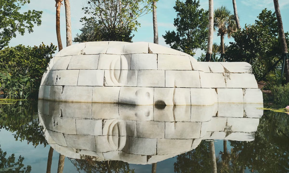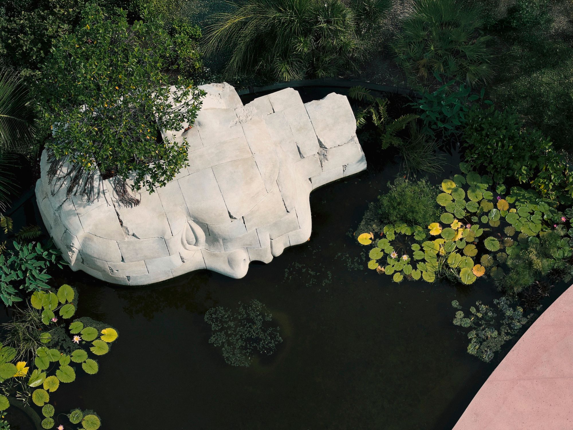 “I was inspired by the history of monumental sculpture, like Olmec heads and images of the Statue of Liberty, where you see just a piece of the head,” says the French-born artist, who works between New York and Paris. The interaction between the work and its garden is a collaboration with the Miami-based landscape architect Raymond Jungles. “There is something very poetic in the symbol of water and with the Coast Guard,” Nourry says. “It’s all about that fine line between the lands and the sea.”