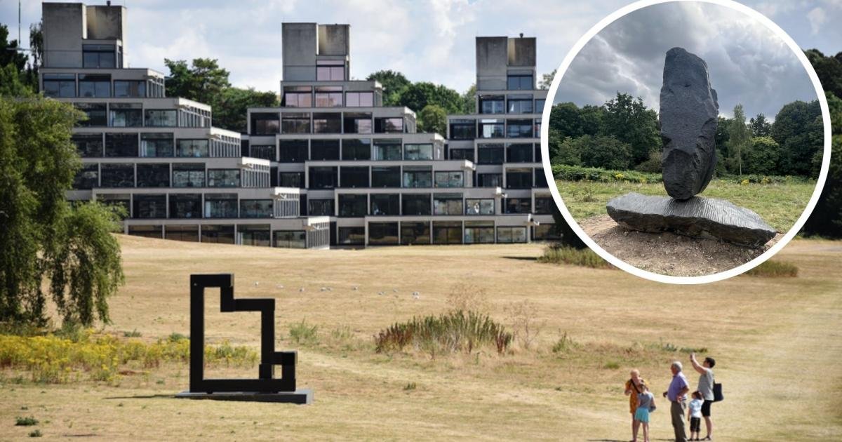 A plaque by the sculpture provides information about the installation (Image: Jack Warren) The sculpture park at UEA has expanded since 2016 and contains three sculptures by sculptor Antony Gormley added in 2017.